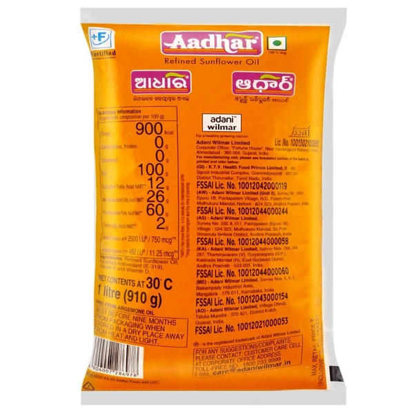 Aadhar Refined Sunflower Oil 1 L