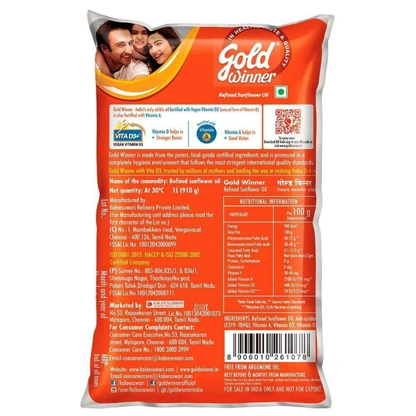 Gold Winner Refined Sunflower Oil 1 L (Pouch)