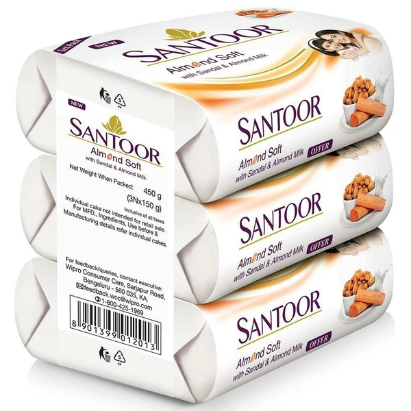 Santoor Almond Soft & Sandal Soap 150 g (Pack of 3)