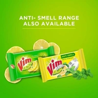Vim is the No.1 dishwashing brand in India. More than 7 out of 10 Urban Indian Households are regular Vim Dishwash Bar users. With the power of 100 lemons (power refers to the cleaning benefits of lemons), Vim dishwash bar easily removes the toughest of stains. It does wonders in cleaning even in small quantities and provides the fastest removal of burnt food (as per independent lab test conducted on burnt food stains), reducing the overall time and efforts required to clean the utensils. Vim dishwash bar provides a pleasant cleaning experience, as it gives a refreshing lemon fragrance during dishwash. It is the only dishwash bar which comes with a unique plastic coating at the bottom that prevents wastage and sogging, as the coating does not let the bar come in direct contact with water and makes it last longer than ordinary bars. It can safely be used for cleaning all types of utensils like stainless steel, ceramic, non - stick ware, glass etc. Vim dishwash bar is available in different pack formats such as single packs, multipacks and sturdy tub packs. Vim dishwash bar is also available in an Anti-Smell variant. Vim's Anti Smell range contains 2 in 1 formulation with pudina extract that gives great in-wash freshness and also the degreasing power of lemons.